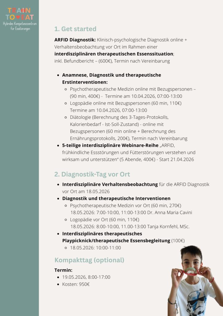 - ARFID – Diagnostik online in Kooperation mit der Uniklinik Leipzig inkludiert bis Sommer 2025, ab dann kostenpfichtig