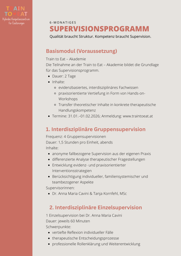 - Online Train to eat – Erstgespräche bei Dr. Anna Maria Cavini und Tanja Kornfehl, MSc über diese Homepage buchen