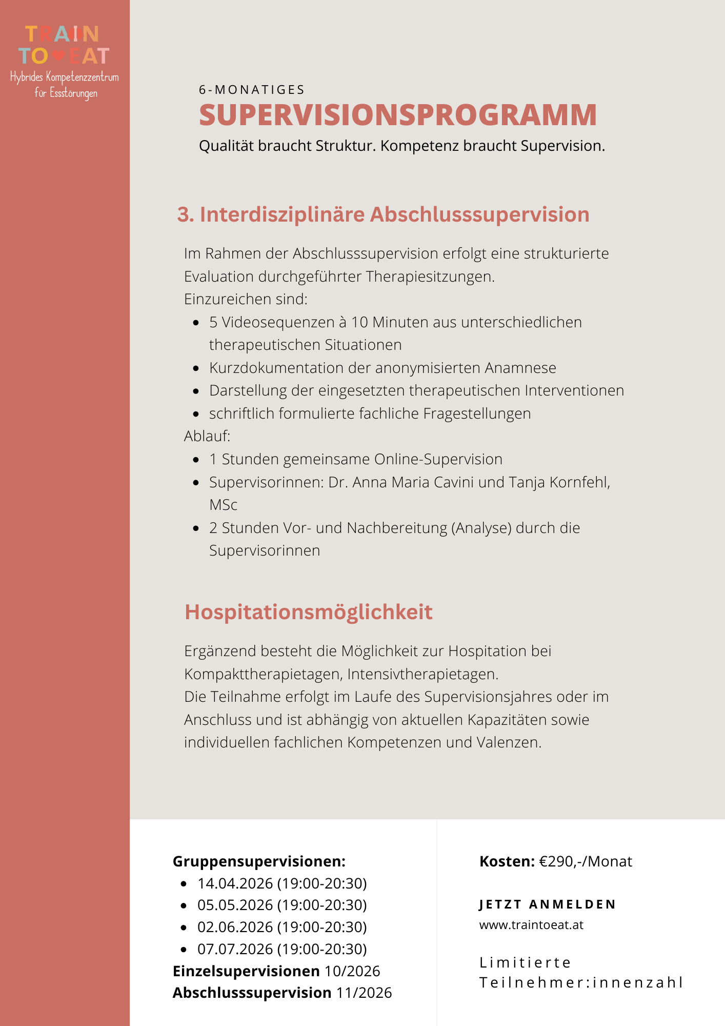 - Online Train to eat – Erstgespräche bei Dr. Anna Maria Cavini und Tanja Kornfehl, MSc über diese Homepage buchen